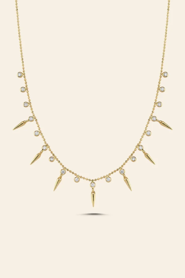 14 Ayar Sarı Altın Taşlı Uç Detaylı Kolye