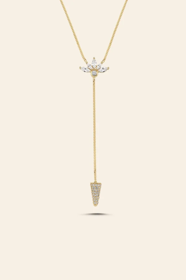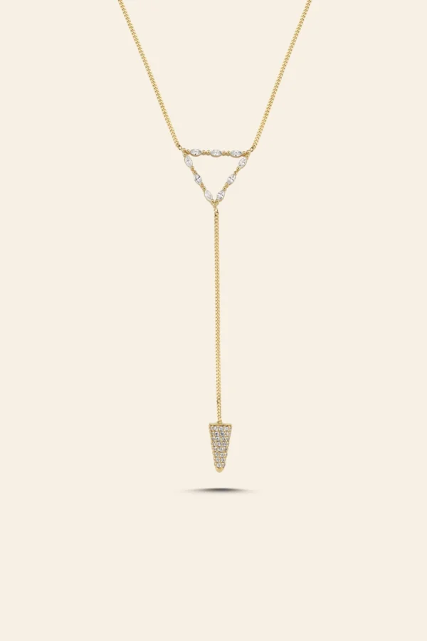 14 Ayar Sarı Altın Üçgen Formlu Uzun Taşlı Kolye