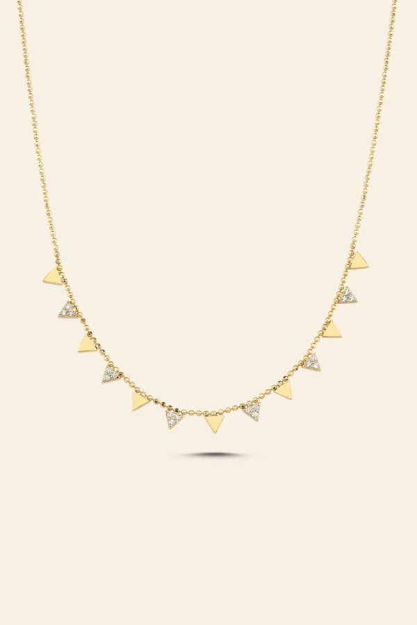 14 Ayar Sarı Altın Üçgen Formlu Taşlı Kolye