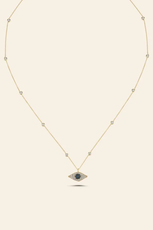 14 Ayar Sarı Altın Mavi Taşlı Nazar Boncuğu Kolye