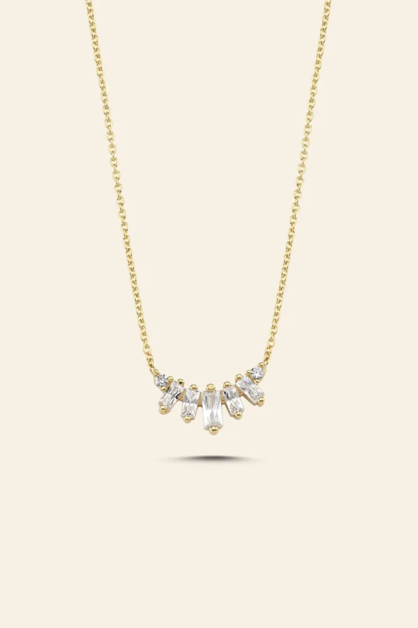 14 Ayar Sarı Altın Baget Taşlı Kolye