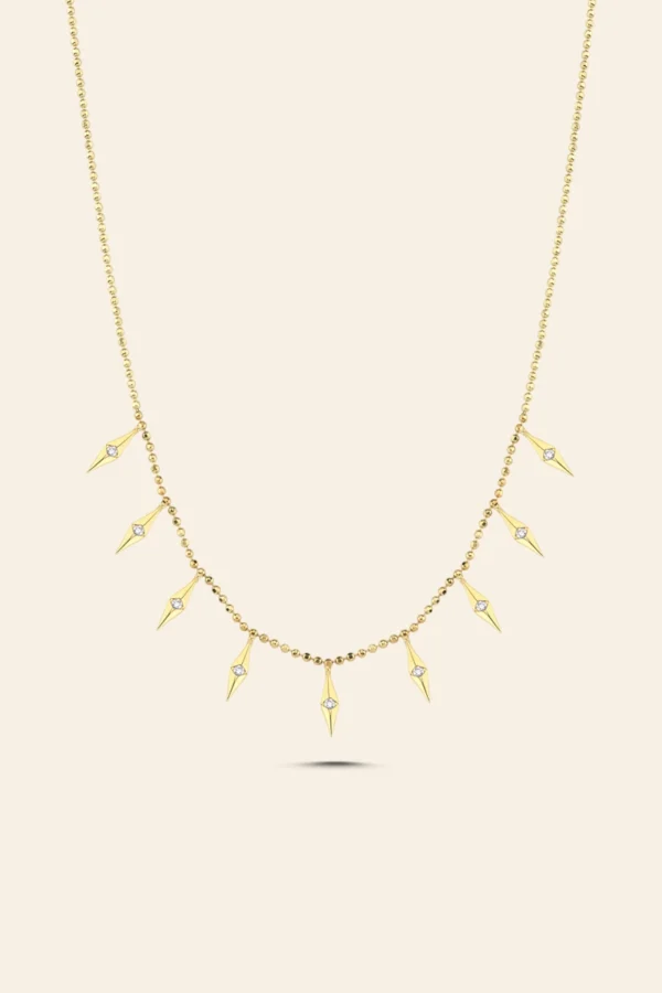 14 Ayar Sarı Altın Uç Formlu Taşlı Kolye