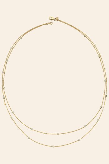 14 Ayar Sarı Altın Taşlı İki Sıra Minimal Kolye