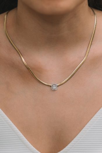 14 Ayar Sarı Altın Beyaz Taşlı Zarif Kolye