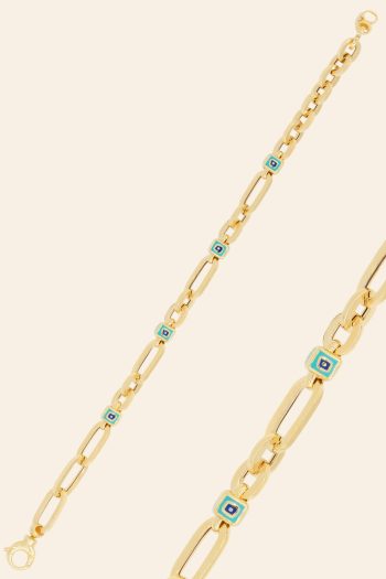 14 Ayar Sarı Altın Renkli Mine İşlemeli Zincir Bileklik