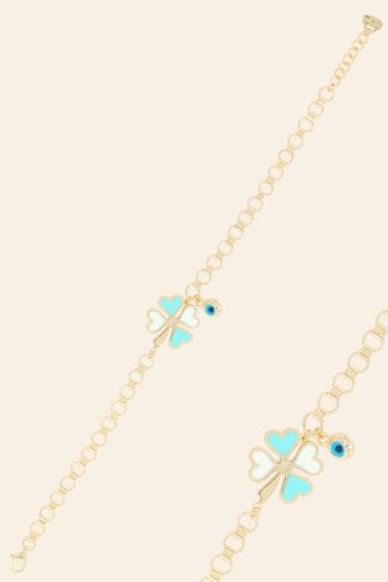 14 Ayar Sarı Altın Mineli Yonca Tasarım Şans Bileklik