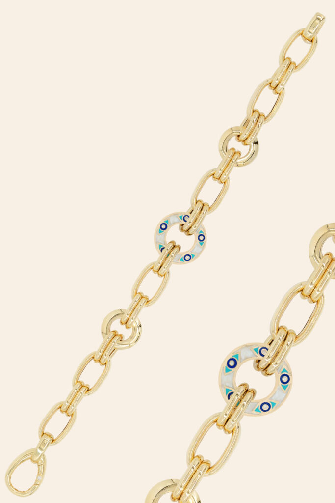 14 Ayar Sarı Altın Renkli Mine İşlemeli Zincir Bileklik