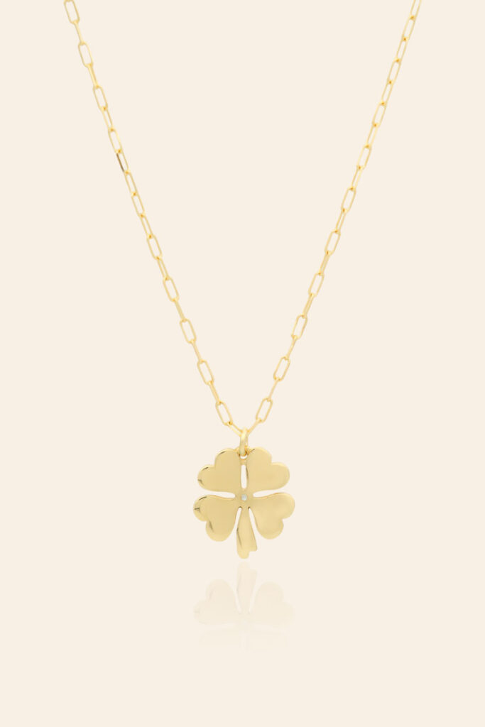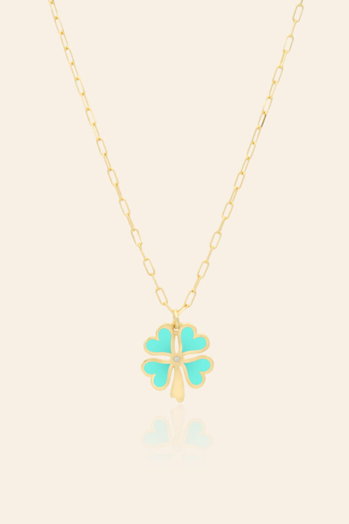 14 Ayar Sarı Altın Renkli Mineli Yonca Tasarım Kolye