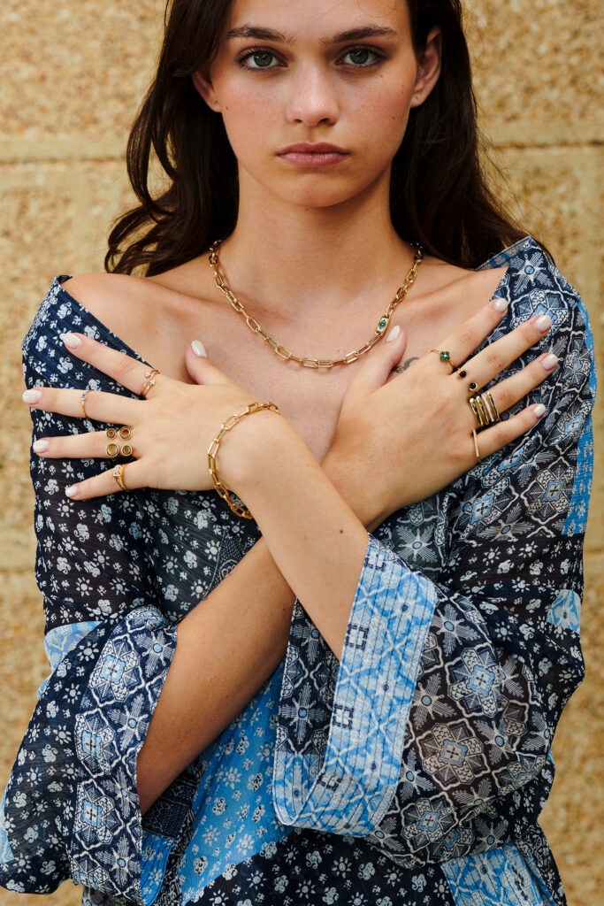 14 Ayar Sarı Altın Renkli Mineli Koleksiyon Zincir Bileklik