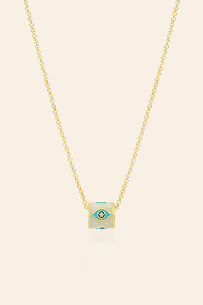14 Ayar Sarı Altın Mineli Nazar Boncuğu Koleksiyon Kolye