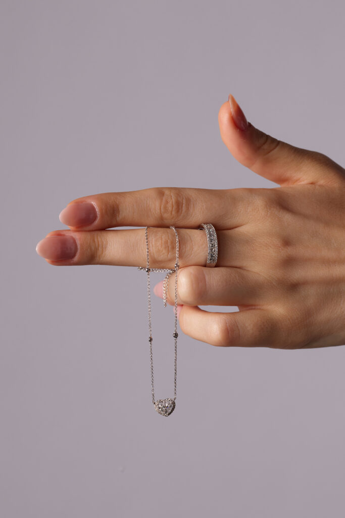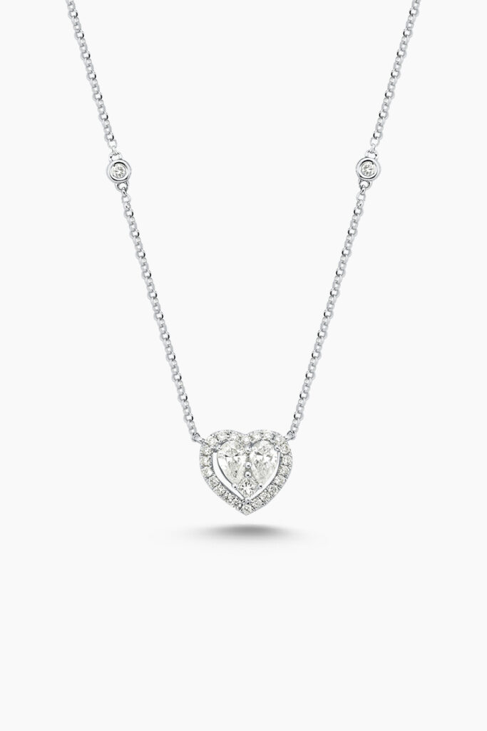 18 Ayar Beyaz Altın 0.46 Karat Kalp Tasarım Pırlanta Kolye