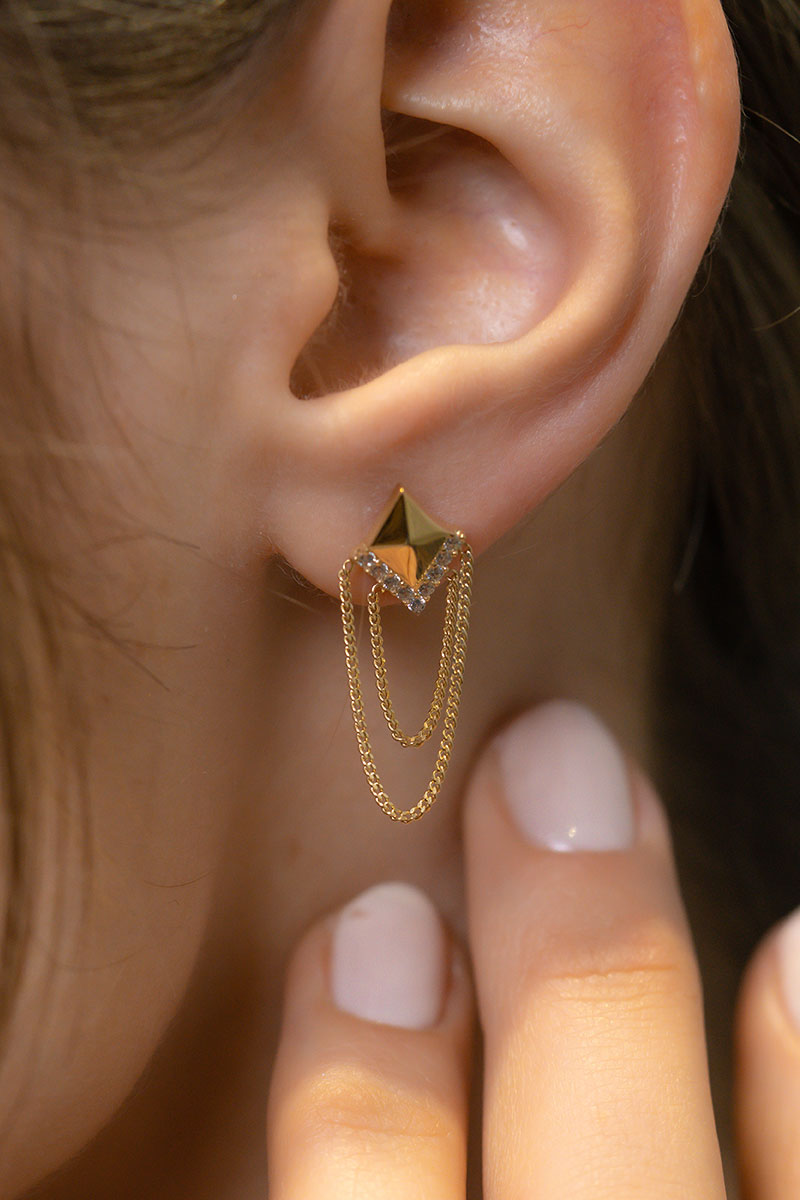 14 Ayar Sarı Altın Geometrik Zincir Tasarım Taşlı Küpe