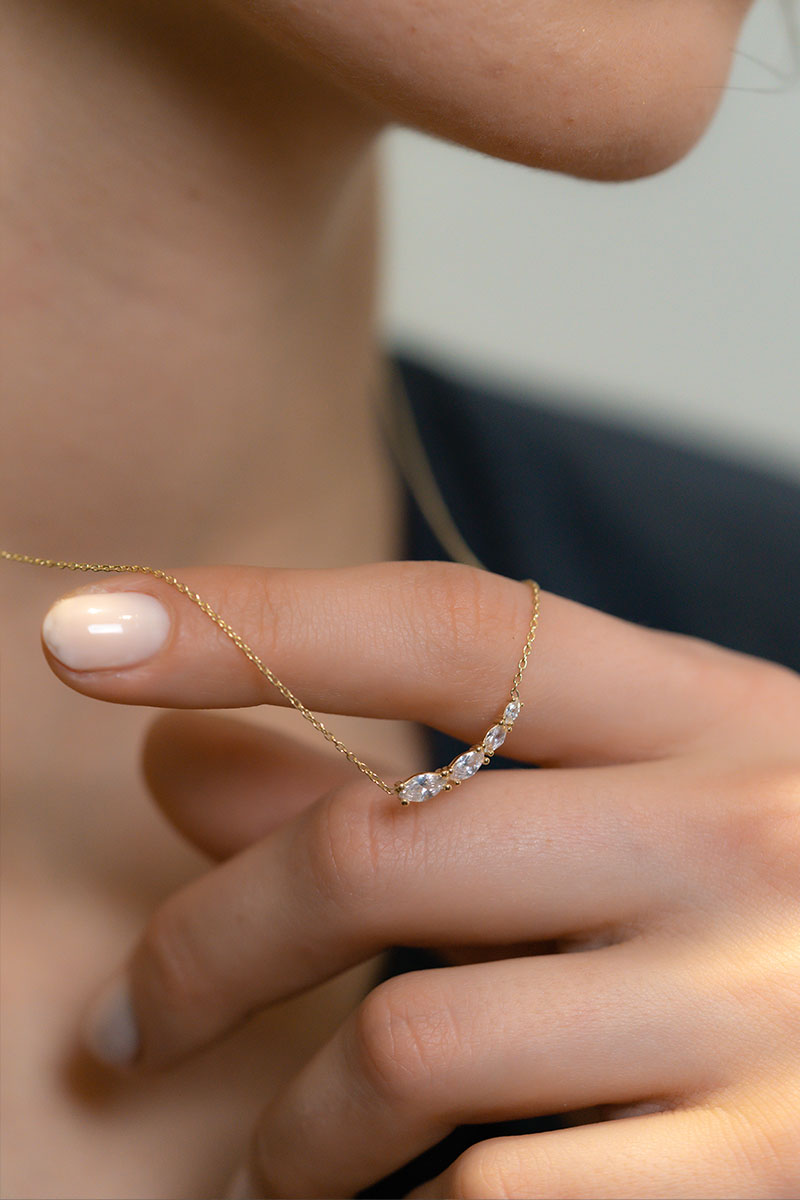 Altın Zincirli Pırlanta Minimal Tasarım Kolye