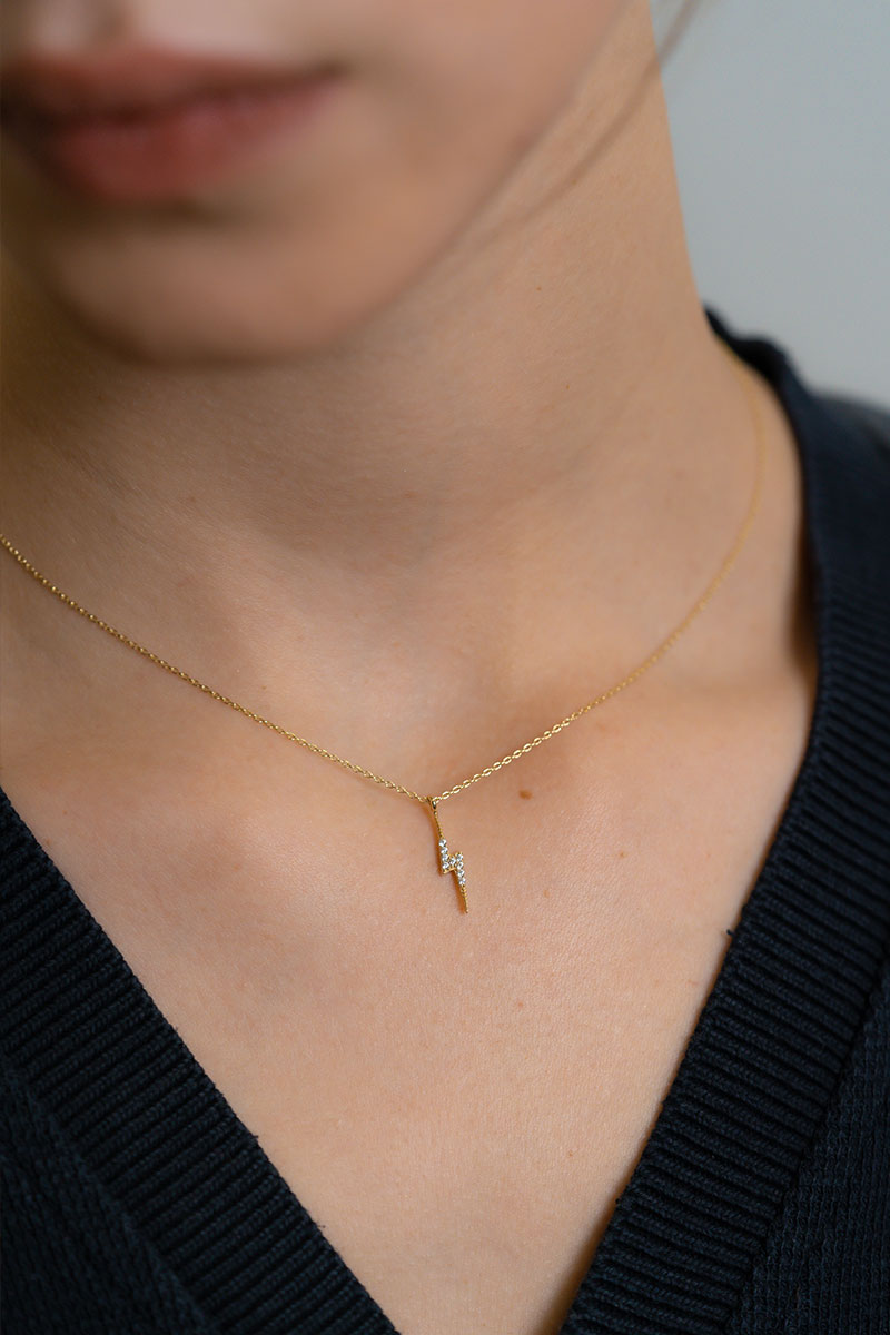 14 Ayar Sarı Altın Şimşek Tasarım Kolye