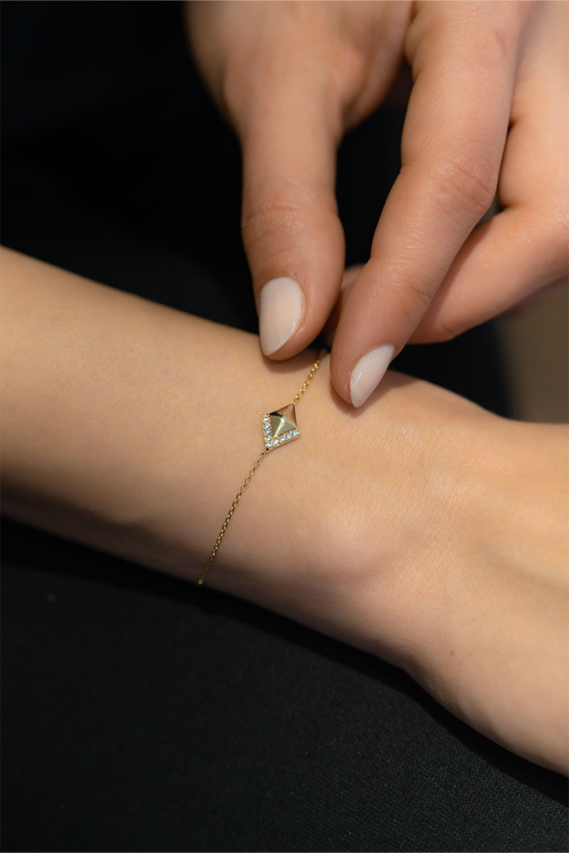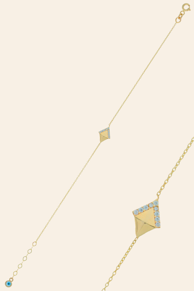 14 Ayar Sarı Altın Taşlı Minimal Bileklik