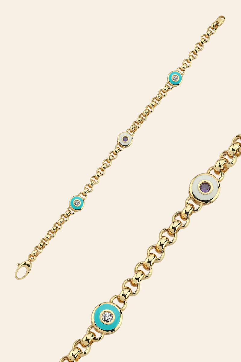 14 Ayar Sarı Altın Taşlı Renkli Mineli Bileklik