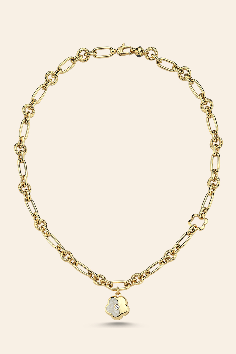 14 Ayar Sarı Altın Mineli Lotus Koleksiyon Kolye