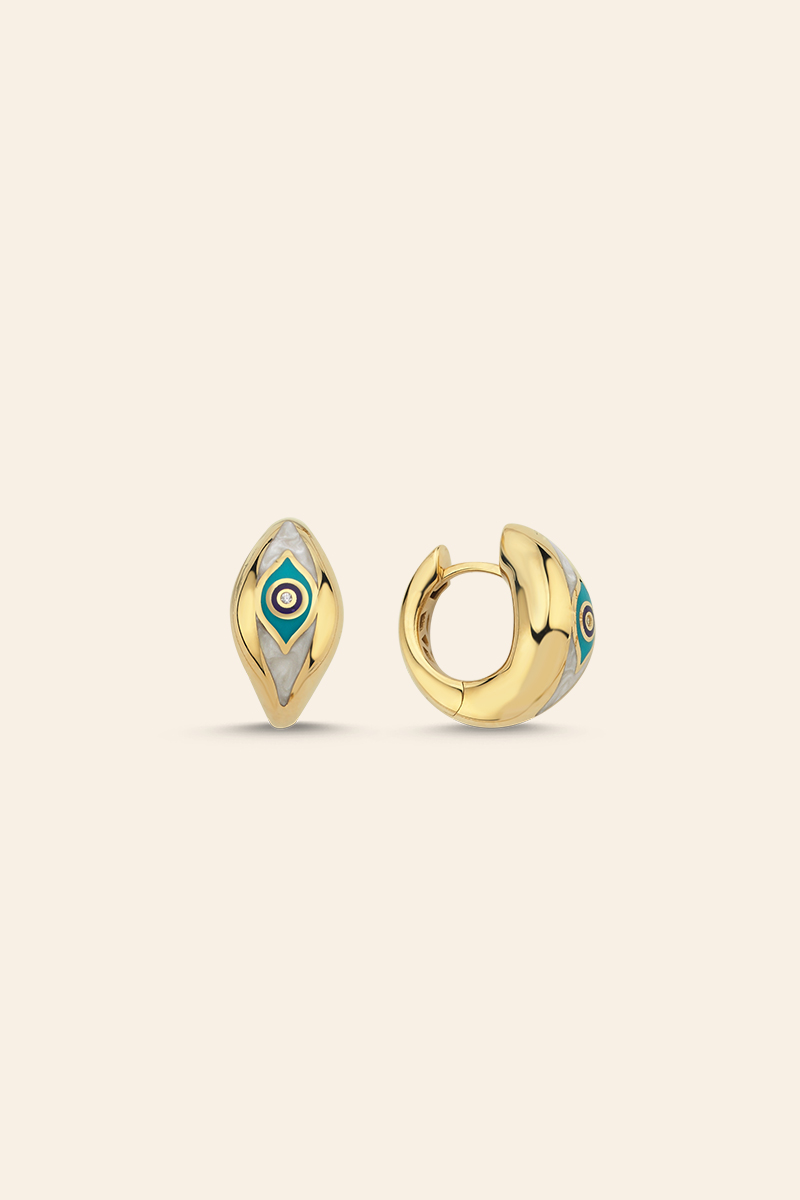 14 Ayar Sarı Altın Mineli Nazar Boncuğu Koleksiyon Küpe