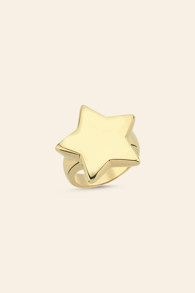 14 Ayar Sarı Altın Yıldız Tasarım Yüzük