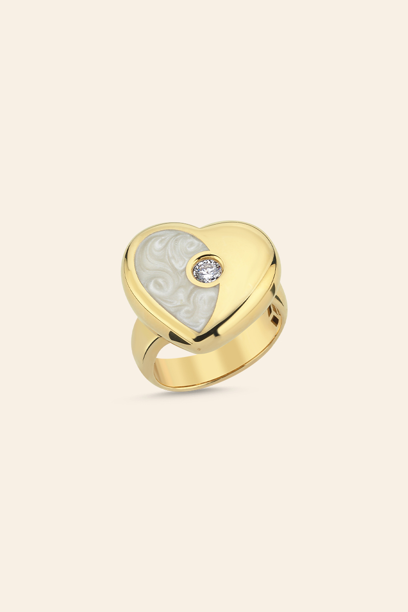 14 Ayar Sarı Altın Mineli Kalp Figürlü Koleksiyon Yüzük
