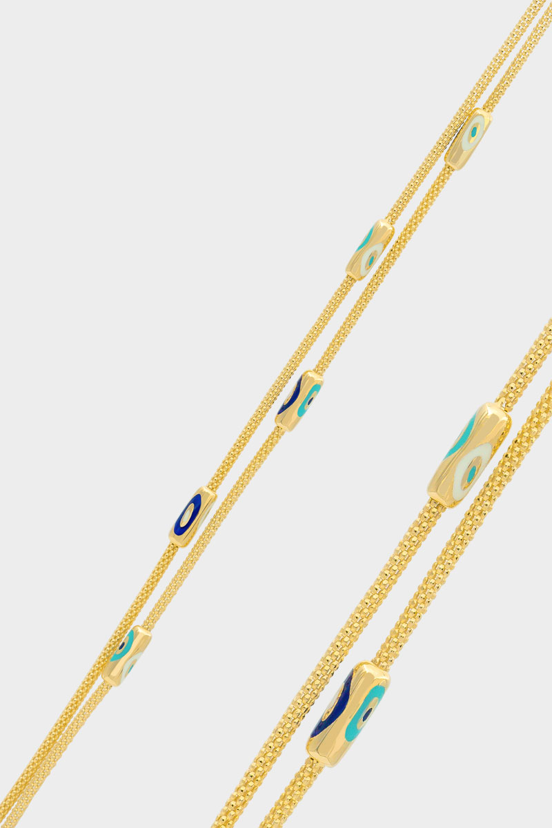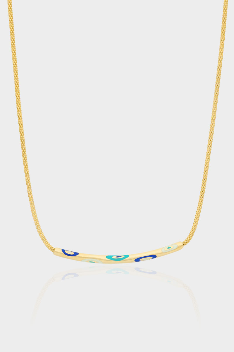 14 Ayar Sarı Altın Mineli Nazar Boncuğu Figürlü Kolye