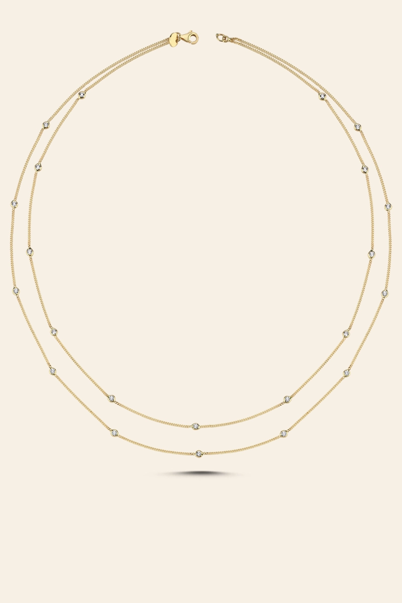 14 Ayar Sarı Altın İkili Taşlı Zincir Kolye