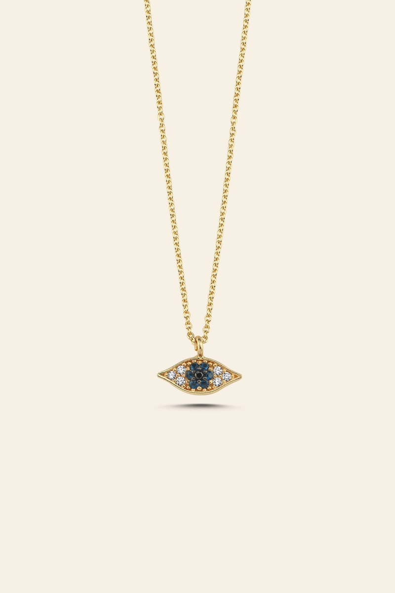14 Ayar Sarı Altın Mini Nazar Boncuğu Kolye