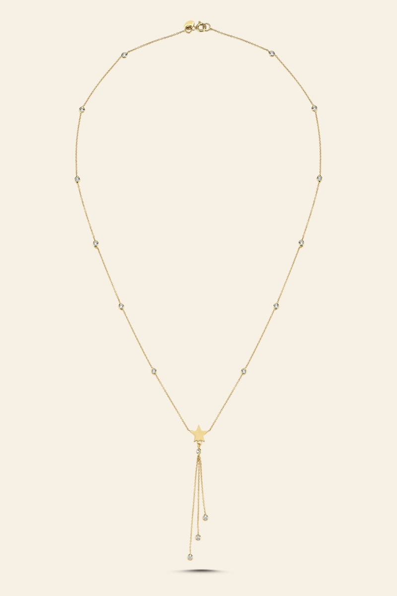 14 Ayar Sarı Altın Yıldız ve Taş Detaylı Kolye