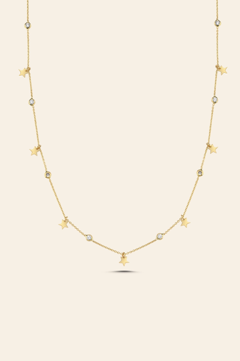 14 Ayar Sarı Altın Yıldızlı Zincirli Kolye