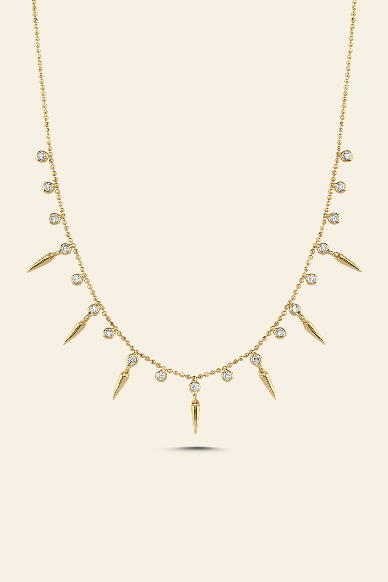 14 Ayar Sarı Altın Uç Formlu Taşlı Kolye