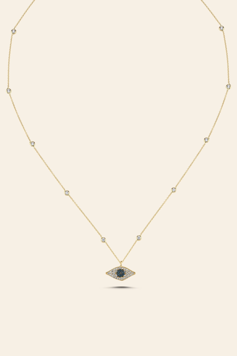 14 Ayar Sarı Altın Mavi Taşlı Nazar Boncuğu Kolye