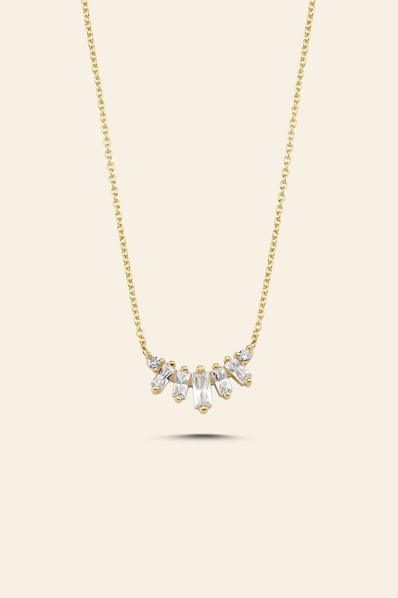 14 Ayar Sarı Altın Baget Taşlı Kolye