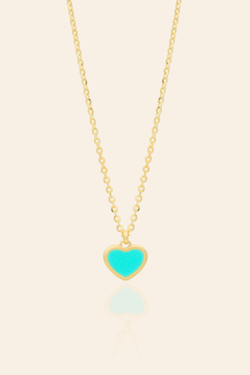 14 Ayar Sarı Altın Turkuvaz Mineli Kalp Figürlü Kolye