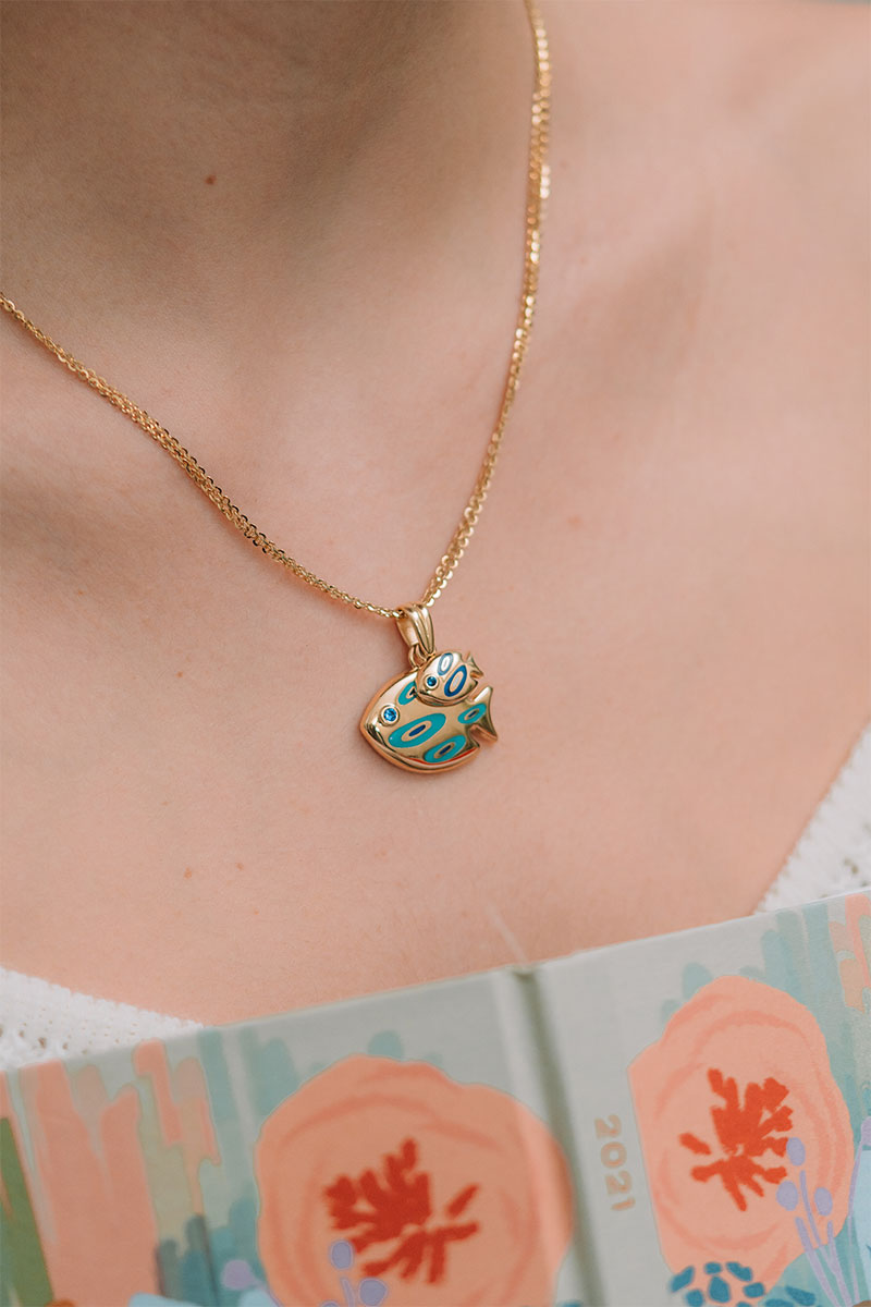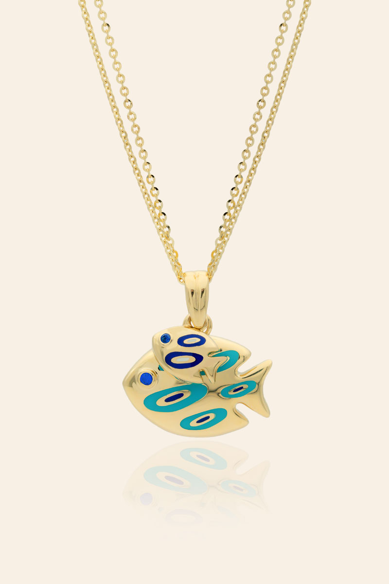 14 Ayar Sarı Altın Renkli Mineli Balık Figürlü Kolye
