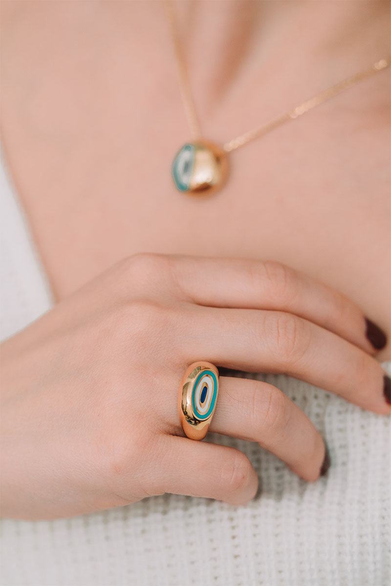 14 Ayar Sarı Altın Nazar Boncuğu Figürlü Yüzük