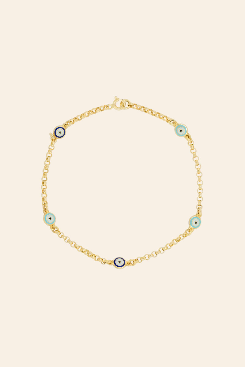 14 Ayar Sarı Altın Mineli Nazar Boncuk Figürlü Bileklik