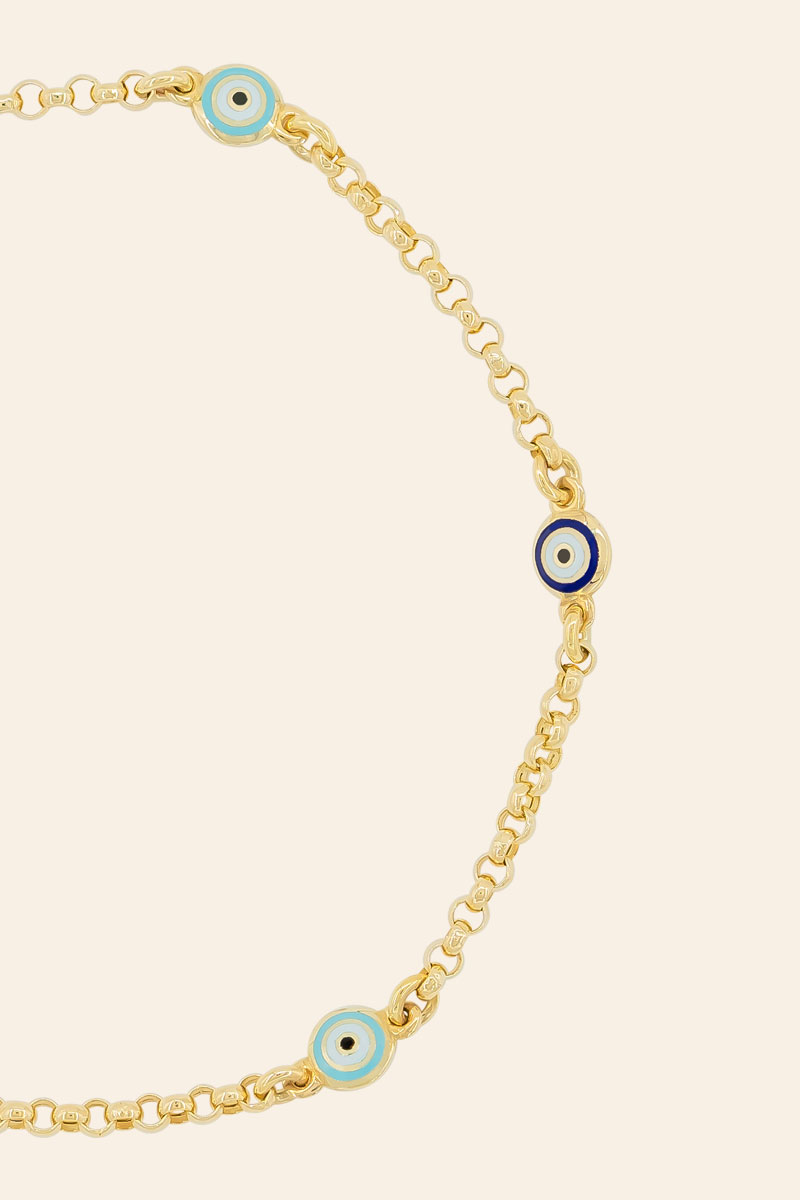 14 Ayar Sarı Altın 3 Sıralı Nazar Boncuk Figürlü Bileklik
