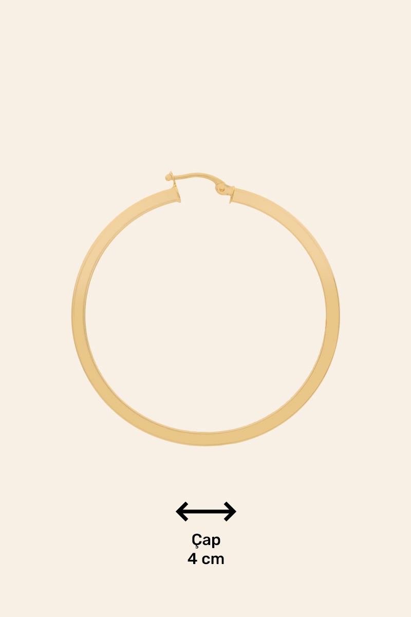 14 Ayar Sarı Altın 4 cm Halka Küpe