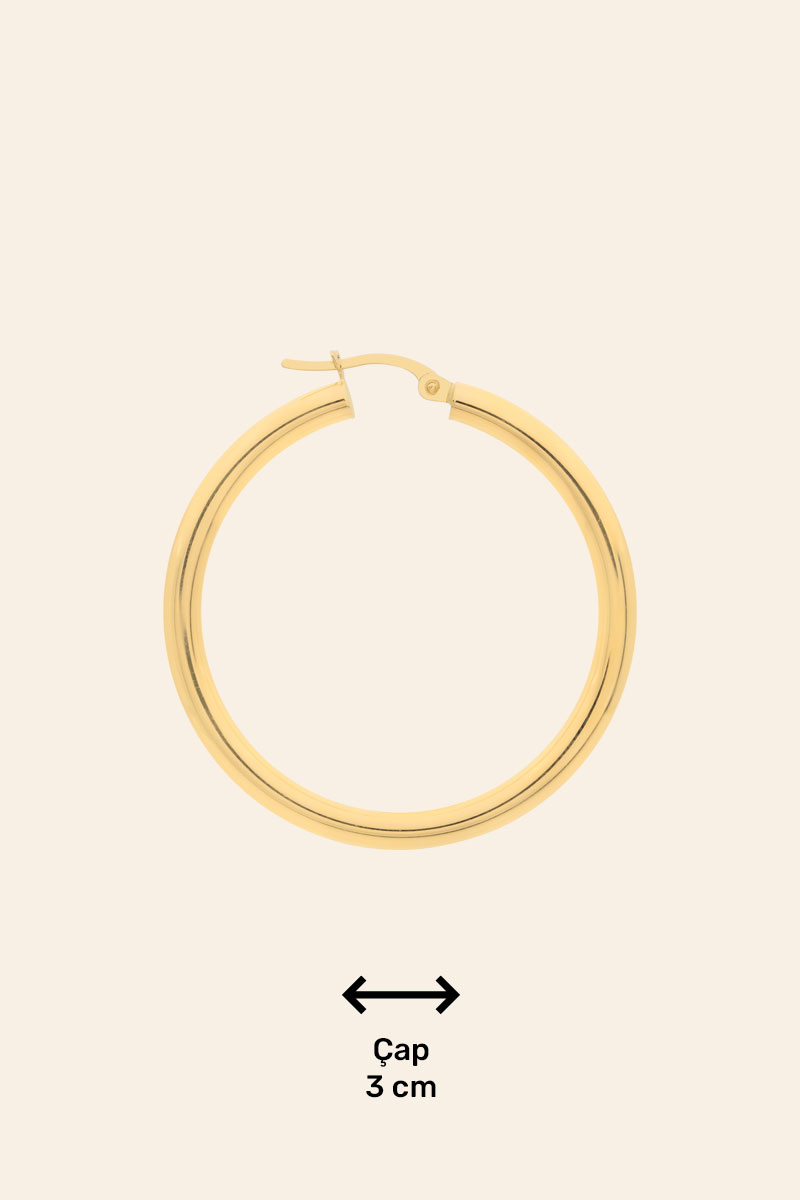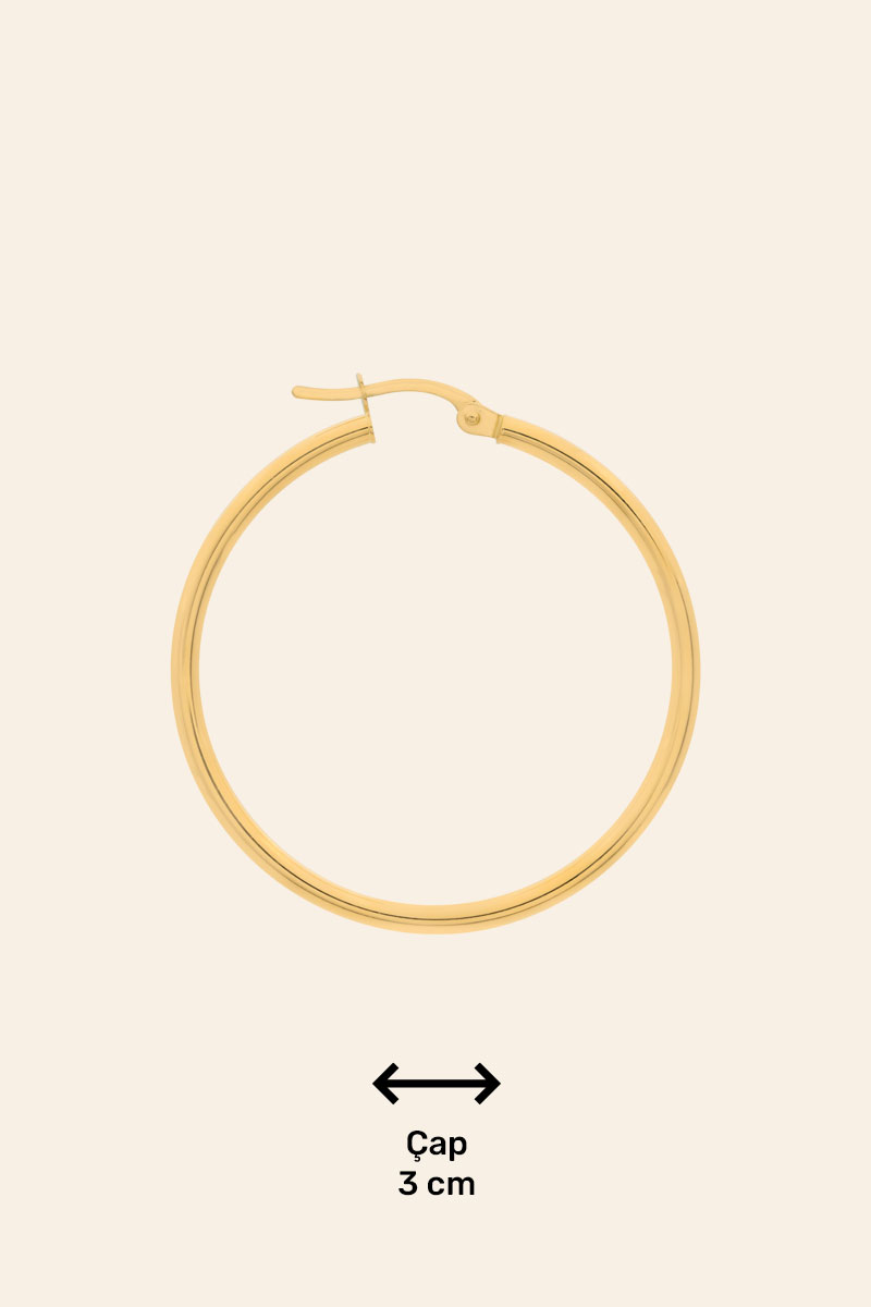 14 Ayar Sarı Altın 3 cm Halka Küpe