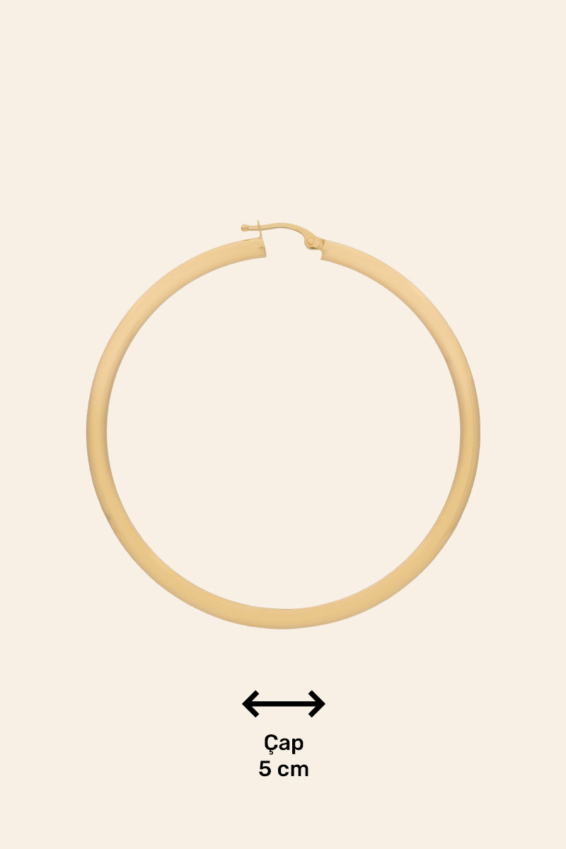 14 Ayar Sarı Altın 4 cm Halka Küpe