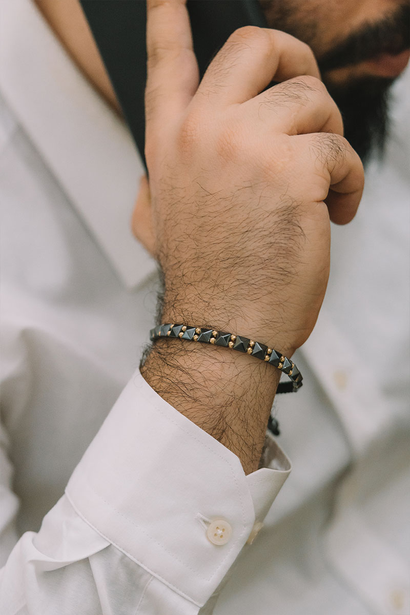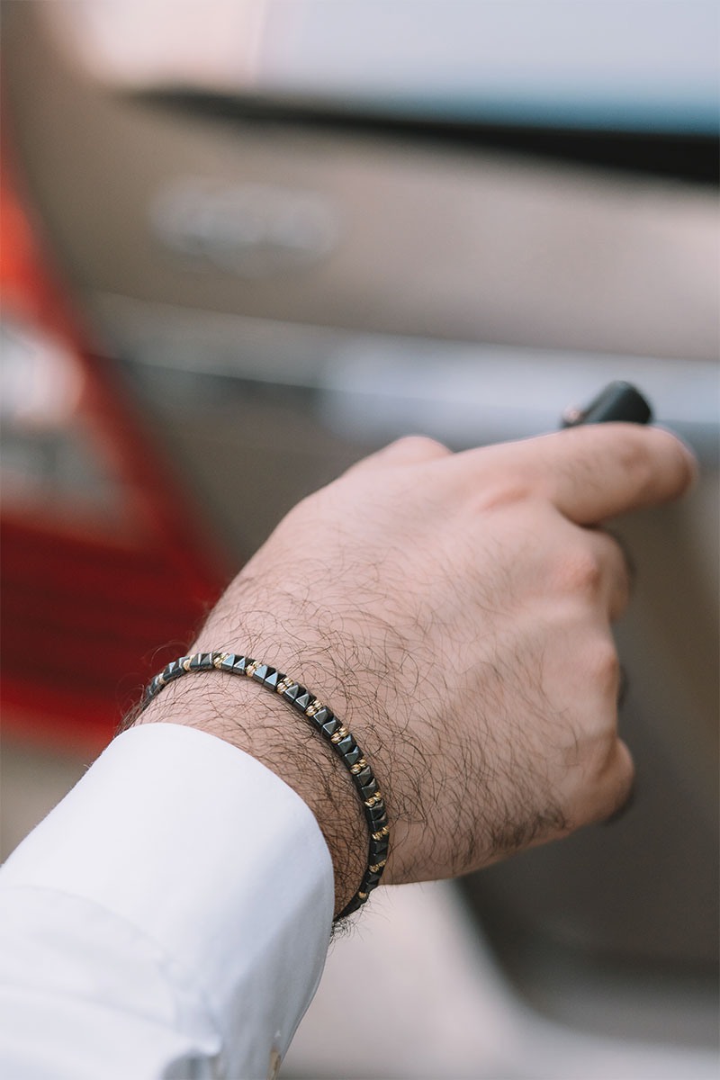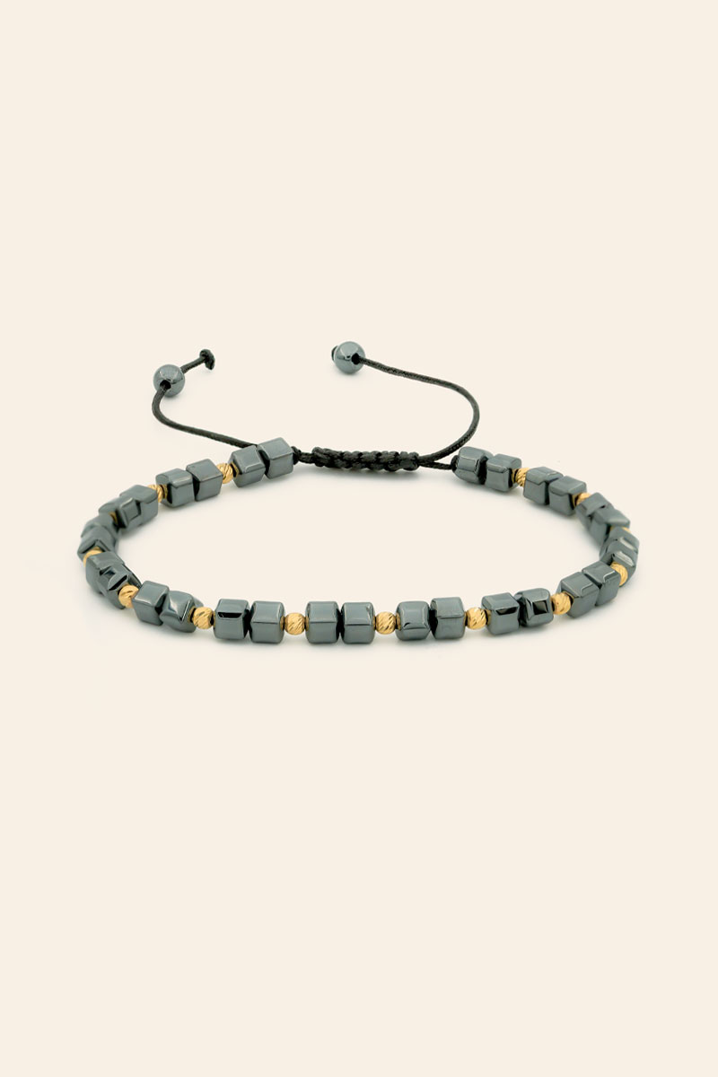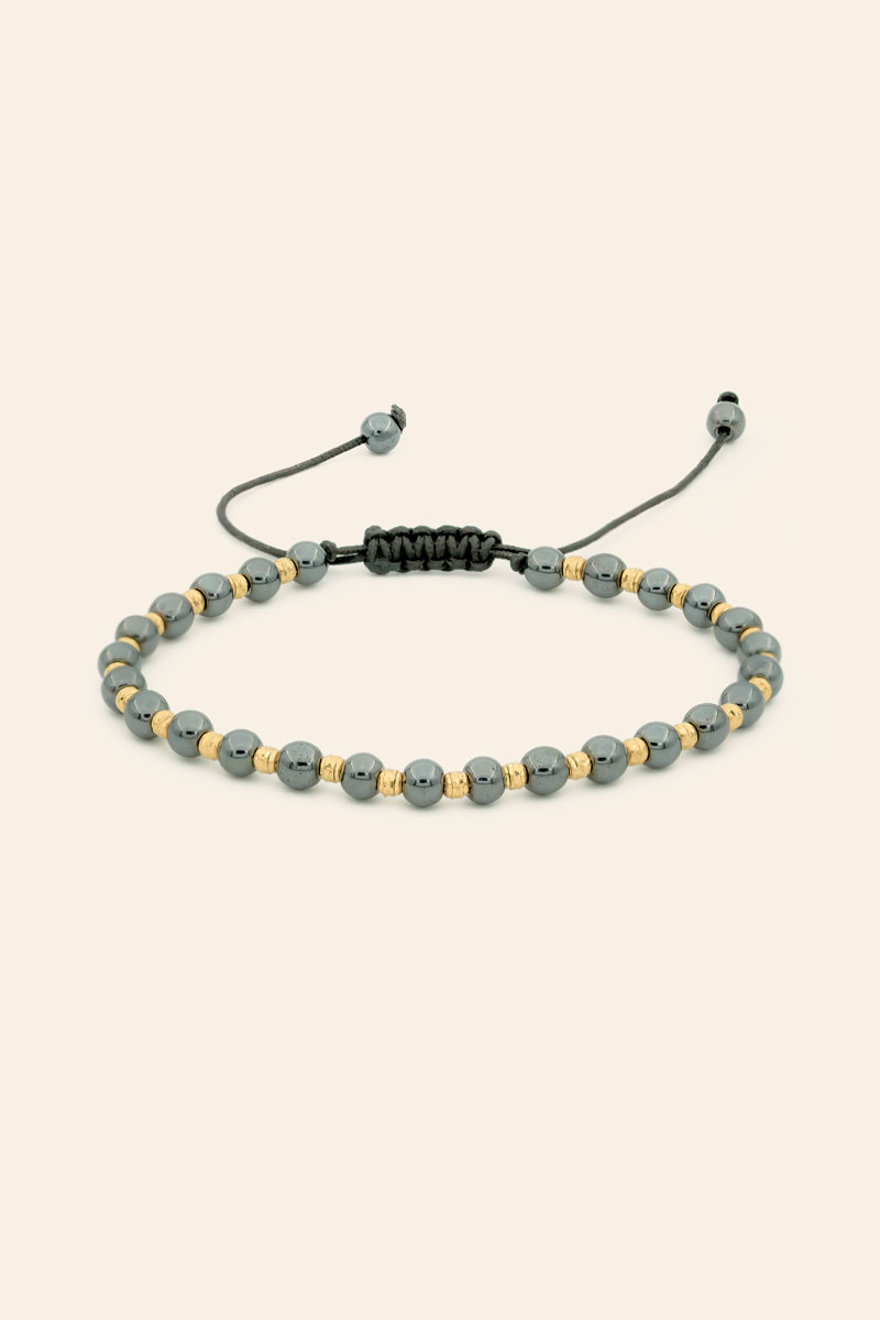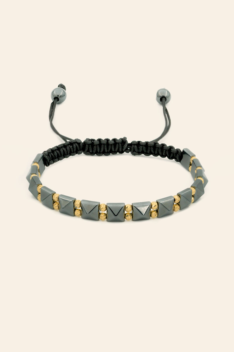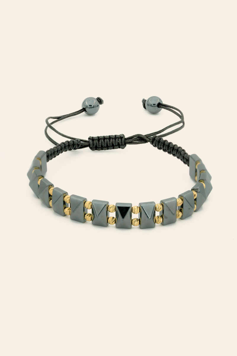 14 Ayar Sarı Altın Toplu Hematit Taşlı İpli Erkek Bileklik