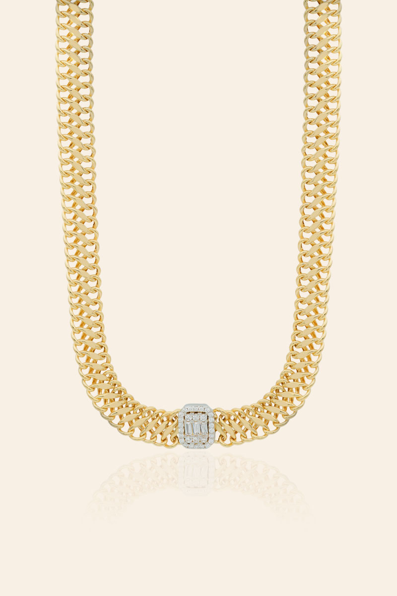 14 Ayar Sarı Altın Taşlı İtalyan Ezme Zincir Kolye