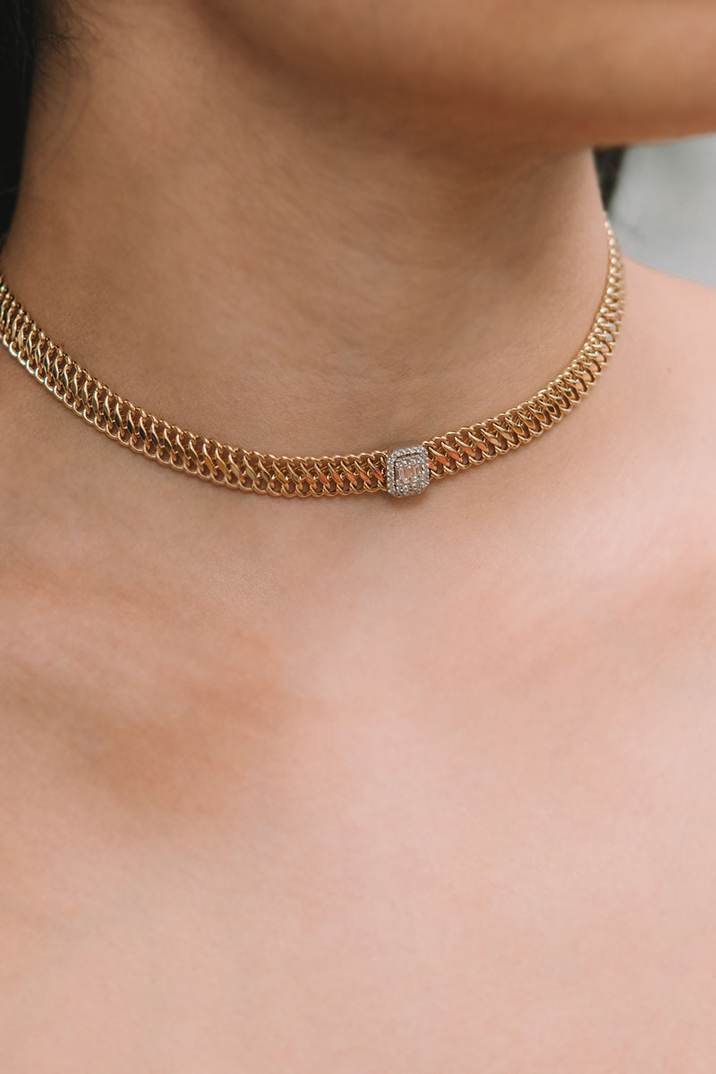 Altın Taşlı Örgü Zincir Kolye