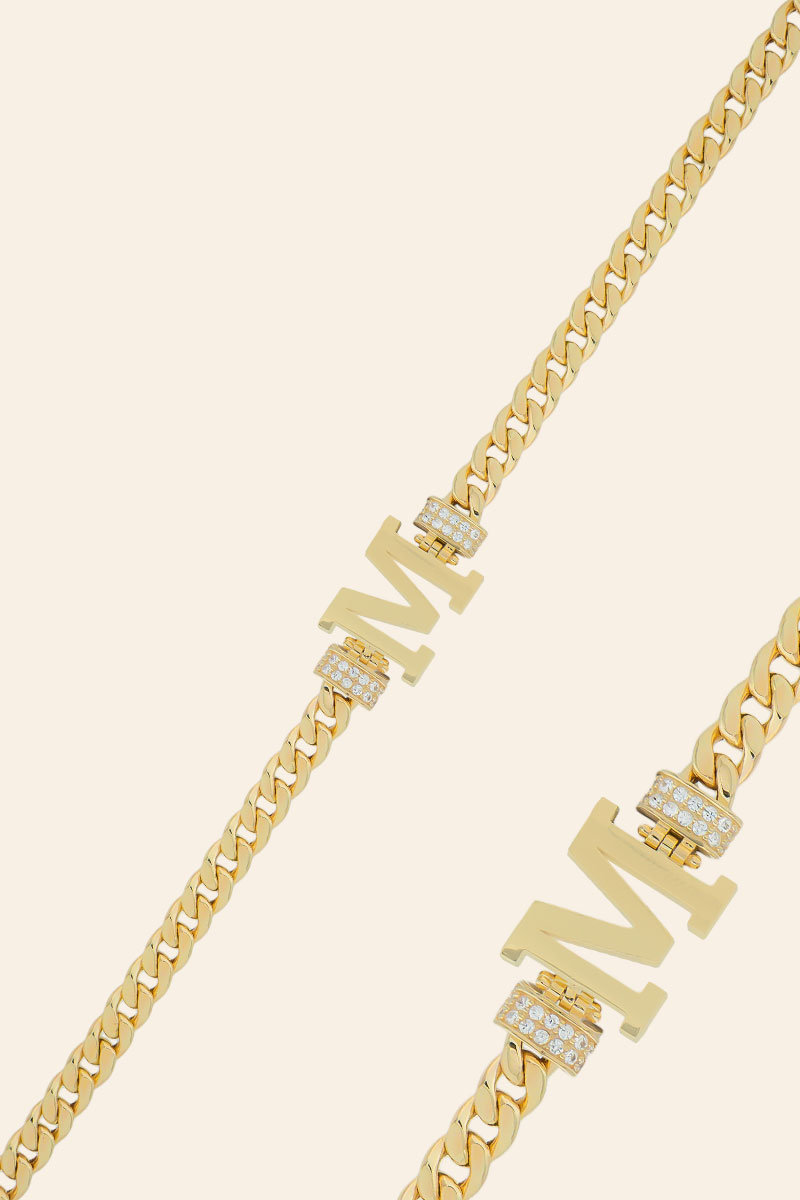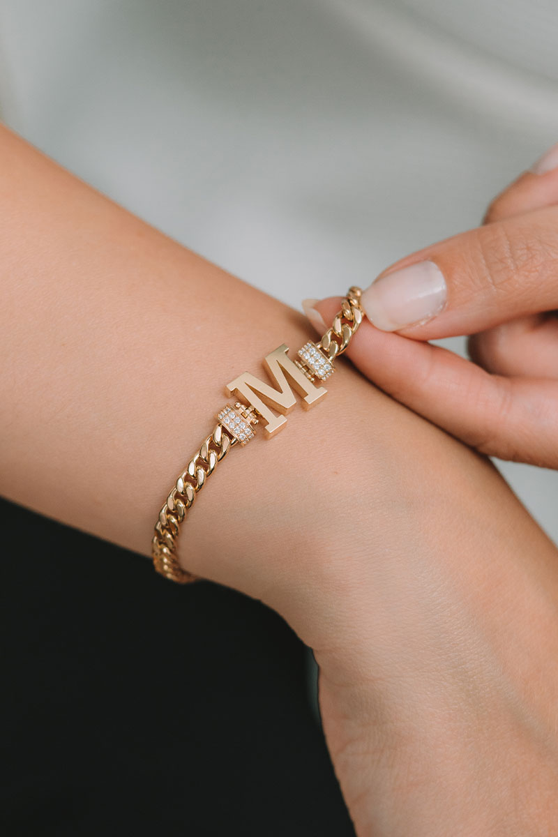 Altın Kişiselleştirilebilir Taşlı Harf Bileklik