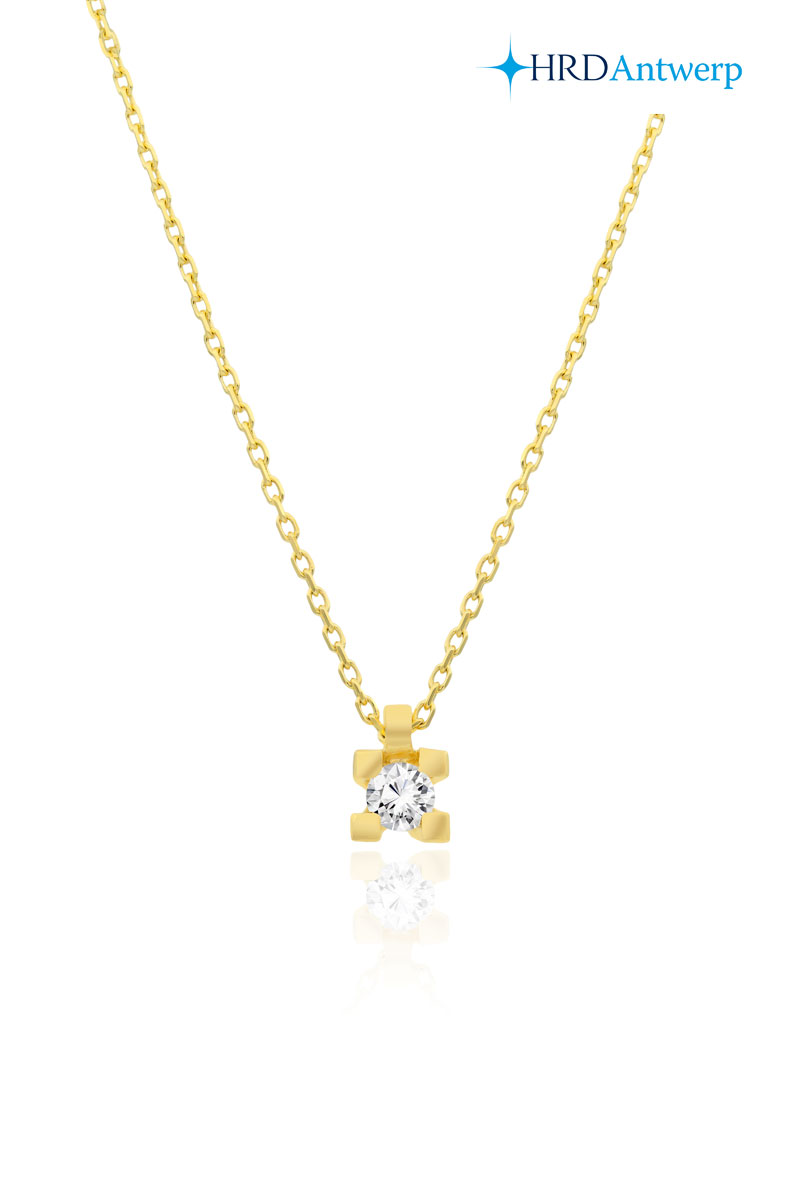 18 Ayar Altın 0.18 Karat Tektaş Kalın Tırnaklı Pırlanta Kolye