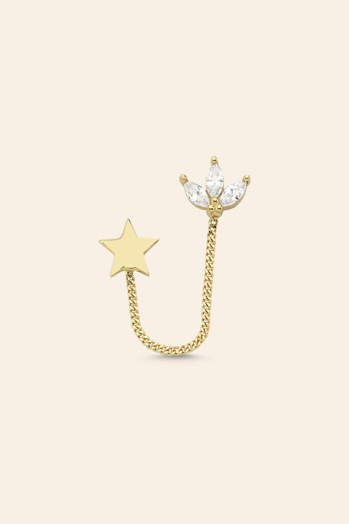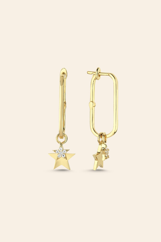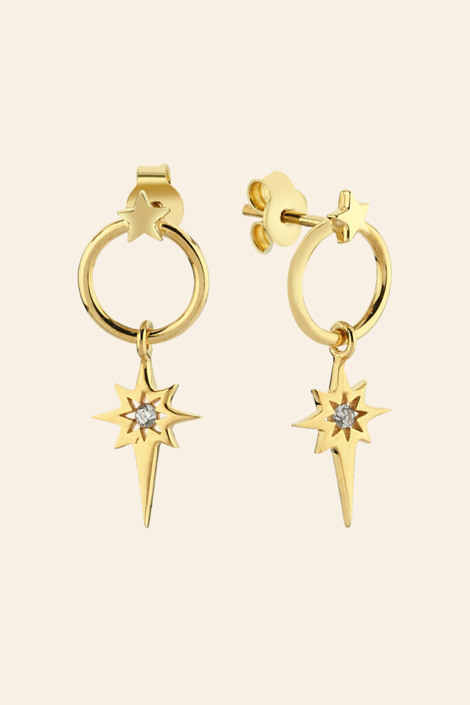14 Ayar Sarı Altın Taşlı Yıldız Küpe