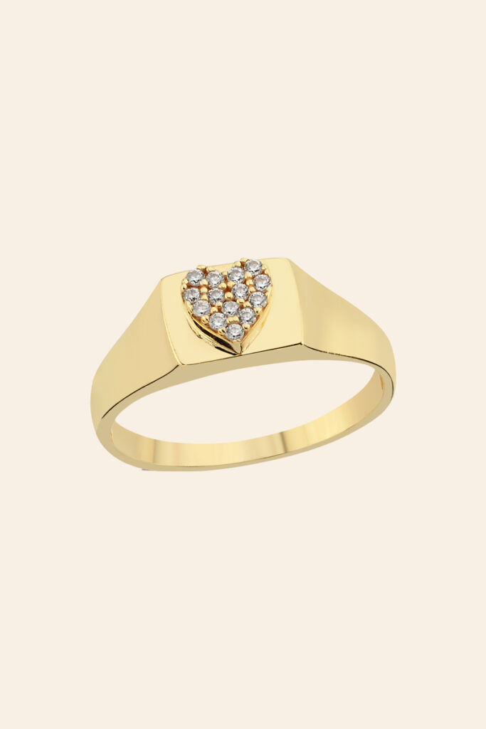 14 Ayar Sarı Altın Taşlı Kalp Tasarım Yüzük