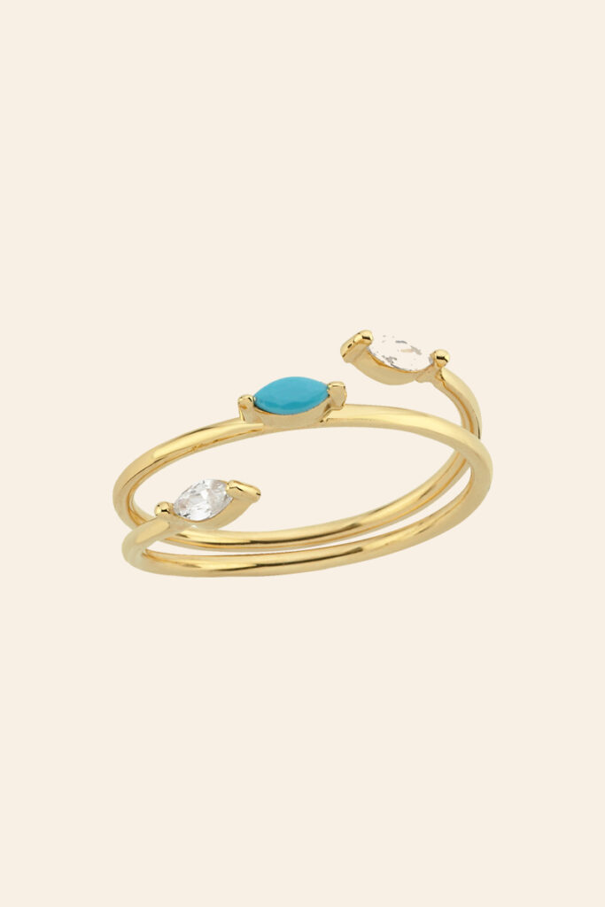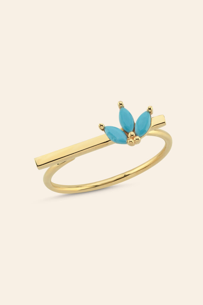 14 Ayar Sarı Altın Firuze Taşlı Tasarım Yüzük