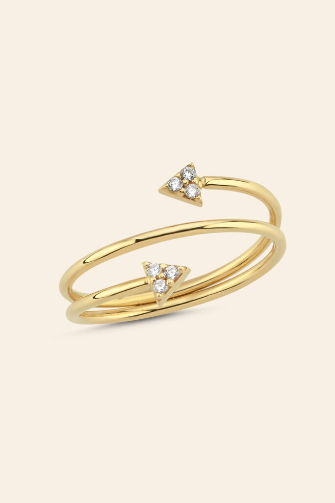 14 Ayar Sarı Altın Taşlı Geometrik Tasarım Eklem Yüzük