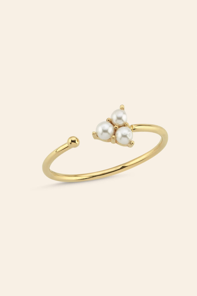 14 Ayar Sarı Altın İnci Taşlı Geometrik Eklem Yüzük